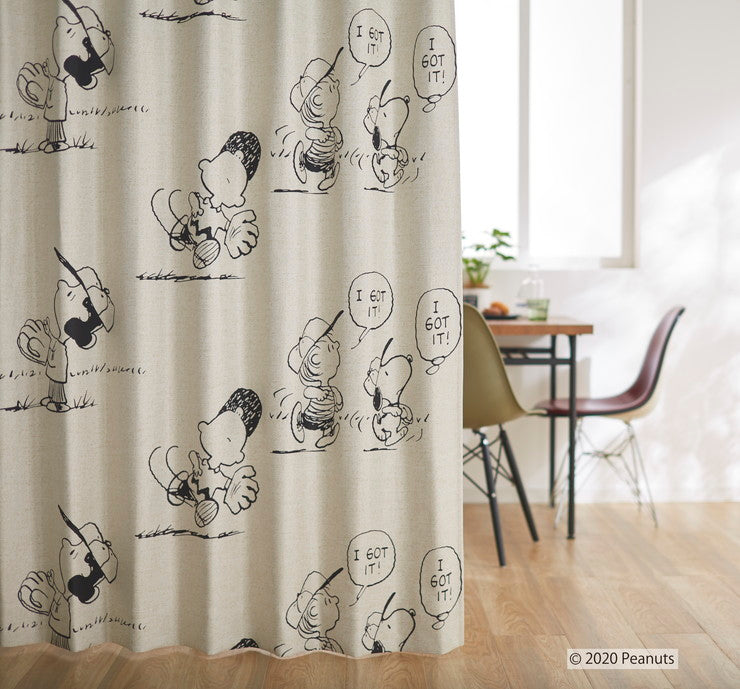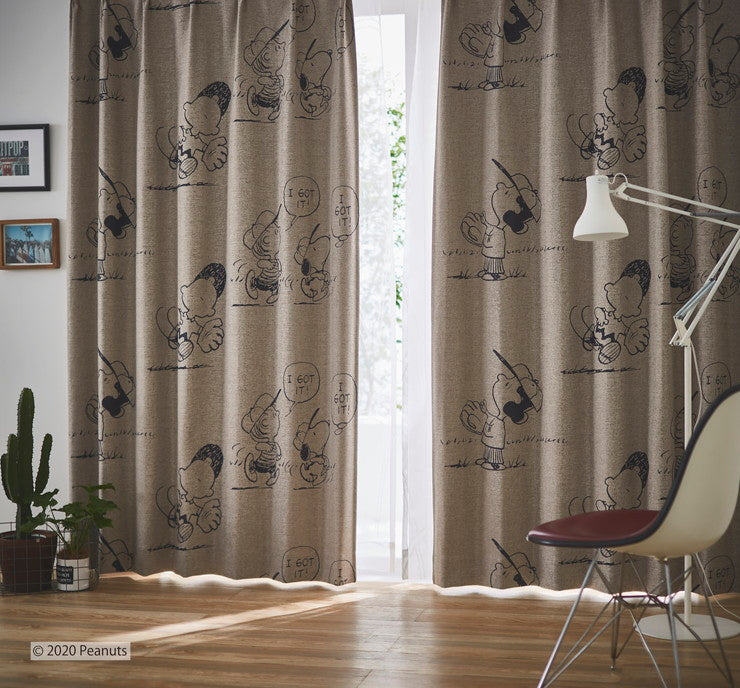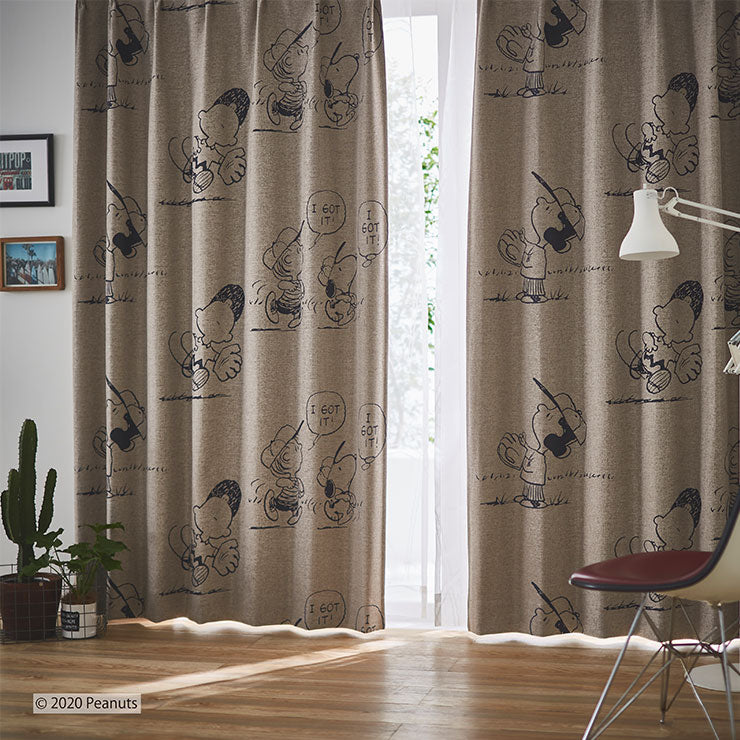 【PEANUTS】1級遮光カーテン 日本製 スヌーピー SNOOPY I got it! アイガットイット! ウォッシャブル ベージュ ブラウン 1枚入(代引不可)