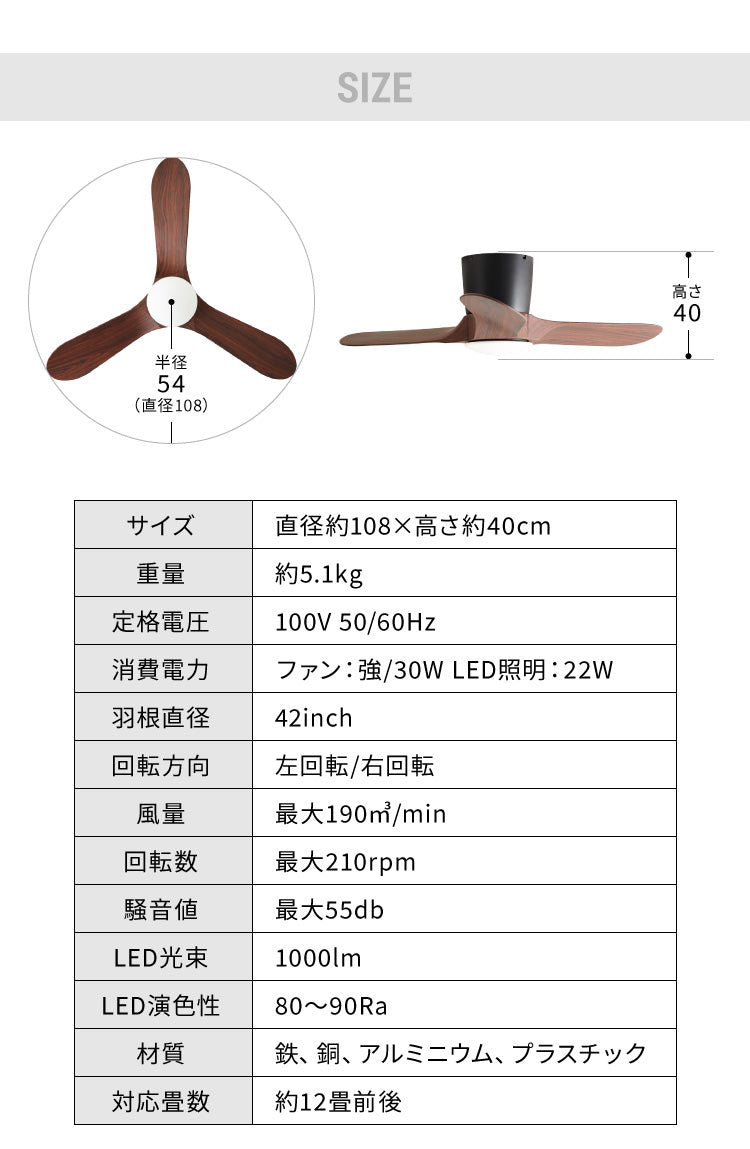 エコ、省エネ、羽根、調光、おしゃれ、モダン、シーリング、ナチュラル、ブラウン、LEDライト、天井照明、照明、ライト風量、調節