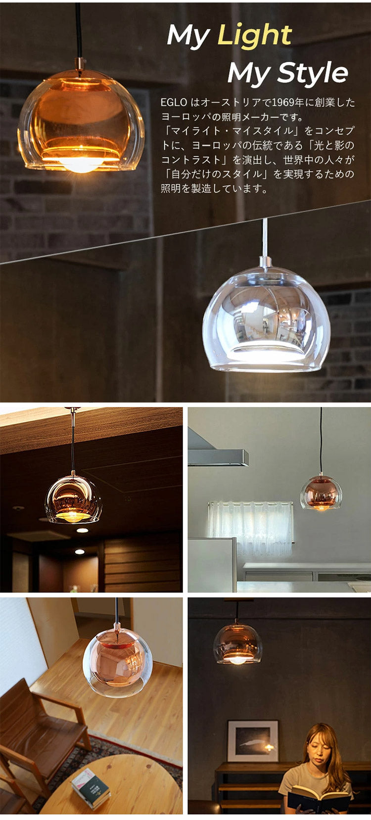 ※EGLO LED電球 G80 E26 320lm 電球色 アンバー (204662J)、G80 E26 400lm 電球色 クリアー (204663J) 推奨
