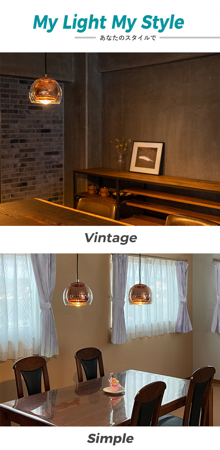 銅の持つカッパー(銅・あかがね)色の落ち着いた輝きを楽しんでください。今のトレンドであるカッパーカラーのペンダントライト。
