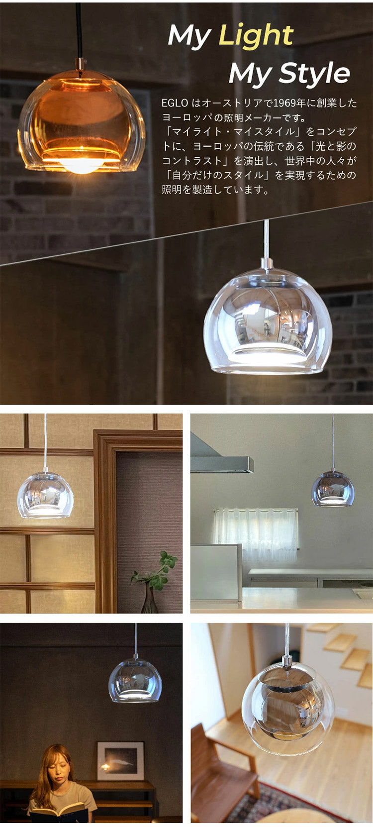 ※EGLO LED電球 A60 E26 485lm 電球色 ミルキー (204661J)、G80 E26 400lm 電球色 クリアー (204663J) 推奨