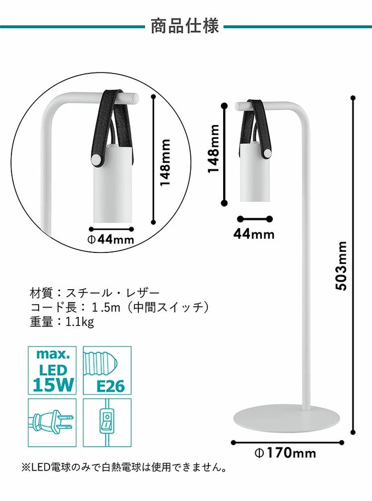 商品サイズ:ソケット:Φ44mm×H148mm (スチール/レザー)