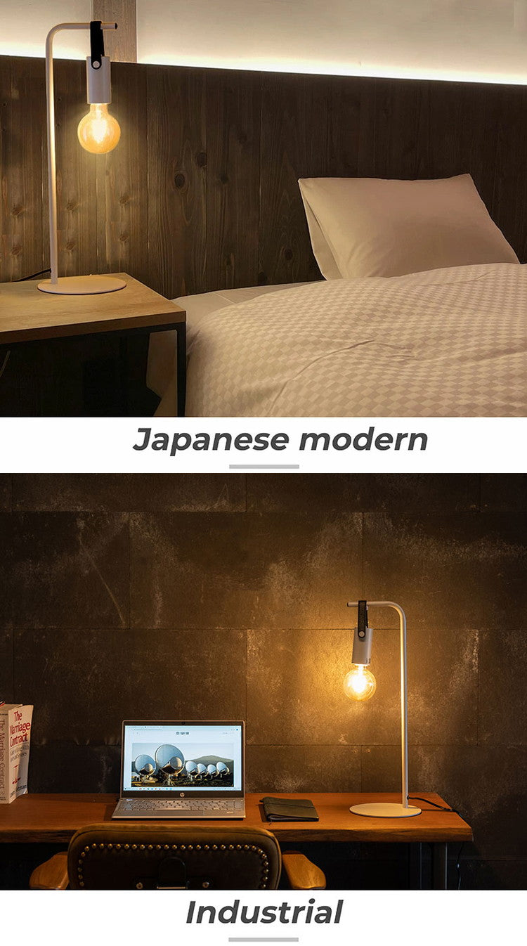 裸電球をつるしただけのような外観で電球とスタンドという2つのものの自然な形をストレートでシンプルに表現しました。