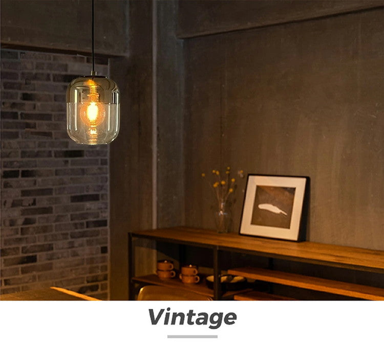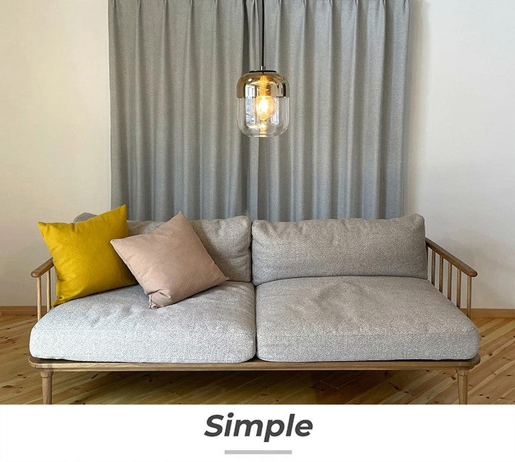 どんぐりのような円形のガラスシェードの上部にゴールドをあしらったかわいらしいペンダントライトです。