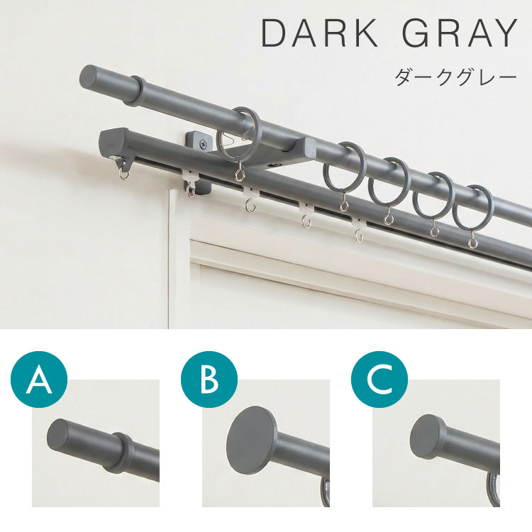 [ポール]:鋼管、[キャップ]:ABS樹脂、[シングルブラケット]:亜鉛ダイカスト、[Nダブルブラケット]:亜鉛ダイカスト、スチール、アセタール樹脂、[リングランナー]:真鍮、硬質ポリエチレン、ステンレス、[エンドリングランナー]:真鍮、ポリカーボネート、ステンレス